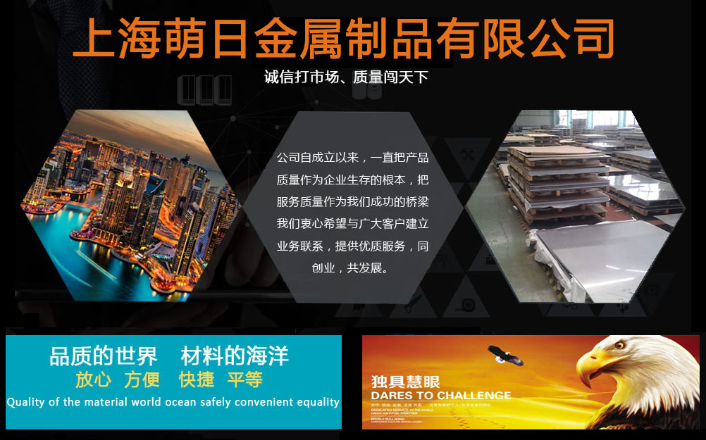 上海萌日金屬制品有限公司一直致力于為國內(nèi)各大中型國有企業(yè),外資企業(yè),民營獨資企業(yè),模具制造企業(yè),機械加工企業(yè),石油化工企業(yè)及器械企業(yè)等供應(yīng)各種特種鋼材,進(jìn)口/國產(chǎn)鋁合金,不銹鋼,合金結(jié)構(gòu)鋼,42CrMo鋼板,35CrMo鋼板,40Cr鋼板,合金圓鋼,中厚板,鍛件,法蘭,鋼帶,軸承鋼,易切鋼,不銹圓鋼,合金管,矩形鋁管,無縫鋁管,鋁管,工業(yè)鋁管進(jìn)口及國產(chǎn)方胚/鋼錠/鋁錠,應(yīng)用于機械,機電,造船,工程,煤礦,紡織,電力,鍋爐, 汽車工業(yè)等各個領(lǐng)域。我公司可以根據(jù)客戶對特殊材料的要求進(jìn)行材料和產(chǎn)品的定制,可按ISO,ANSI,JIS,DIN,GB等標(biāo)準(zhǔn)定制,我們將本著"誠實守信,合作共贏,長期合作"的理念與新老客戶一起進(jìn)步發(fā)展。